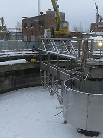 В декабре 2018 года наша компания вернулась на очистные сооружения Череповца. Теперь уже работы проводились на первичном отстойнике: был установлен илоскреб модели ИУ-20. Конструкция илоскреба позволяет осуществить дальнейшее перекрытие водной поверхности отстойника с применением плоского неподвижного перекрытия, что также стоит в планах реконструкции на ближайший период.