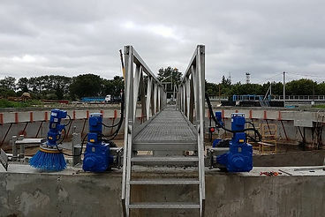 В рамках реконструкции наша компания провела работы по изготовлению и монтажу оборудования на двух вторичных радиальных отстойниках диаметром 40 метров. Теперь вместо типового оборудования 1973 года на отстойниках работают новые илососы марки СО-40, полностью выполненные из нержавеющей стали. Открытый в верхней части отводящий лоток обеспечивает возможность визуального контроля за процессами сбора ила, а также прочистки сосунов и отводящего лотка без опорожнения отстойника.